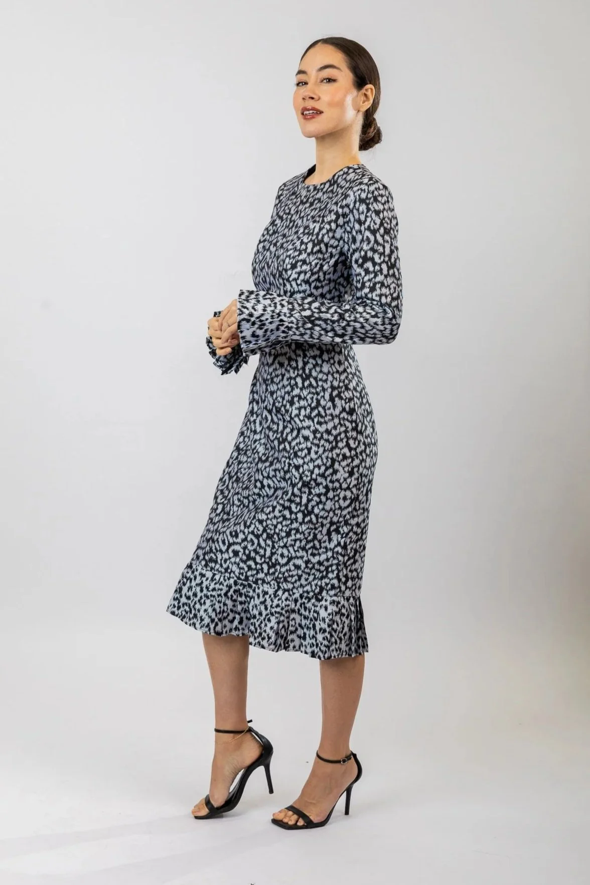 This elegant dress is crafted from the finest, designed to stand out and constructed to fit the women’s figure perfectly. The fitted dress long sleeves and hemline are pleated to enhance the already bold and appealing look. It’s the must have dress, perfect for any special occasion!
